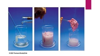 Polymers are large molecules formed by combining many small repeating units called monomers. There are several types of polymers classified by their source, structure, and method of formation. Polymers can be natural, synthetic, or semi-synthetic and can have linear, branched, or cross-linked structures. Polymerization is the process where monomers combine to form polymers and can occur through addition, condensation, or copolymerization reactions. Key properties of polymers like glass transition temperature and tacticity depend on factors like molecular weight and stereochemistry of the repeating units.