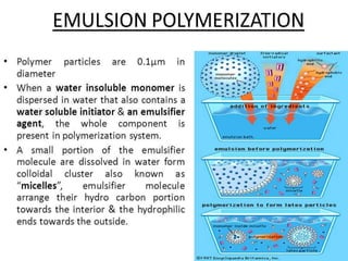 2) Polymerization is initiated by a reactive site on a monomer that is produced using an initiator. This allows monomers to add onto a growing polymer chain.