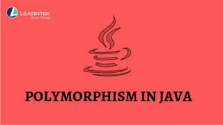 The document explains polymorphism in Java, highlighting it as a key concept in object-oriented programming that allows objects to take multiple forms. It details two types of polymorphism: compile-time (method overloading) and runtime (method overriding), with examples illustrating how methods can behave differently based on parameters or subclass types. The advantages and disadvantages of polymorphism are also discussed, including code reuse and potential performance issues.