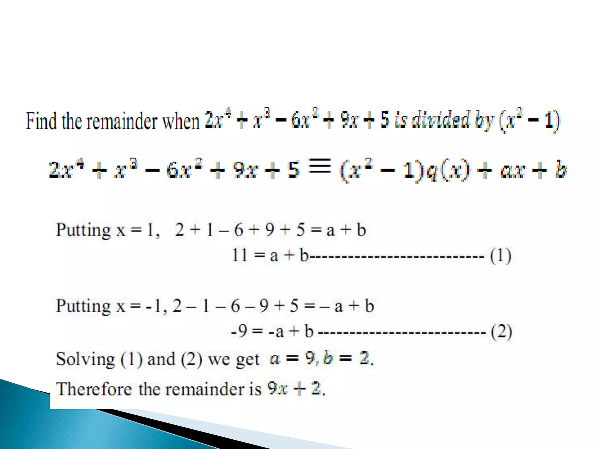 Here are the remainders when dividing the given polynomials by the specified polynomials: