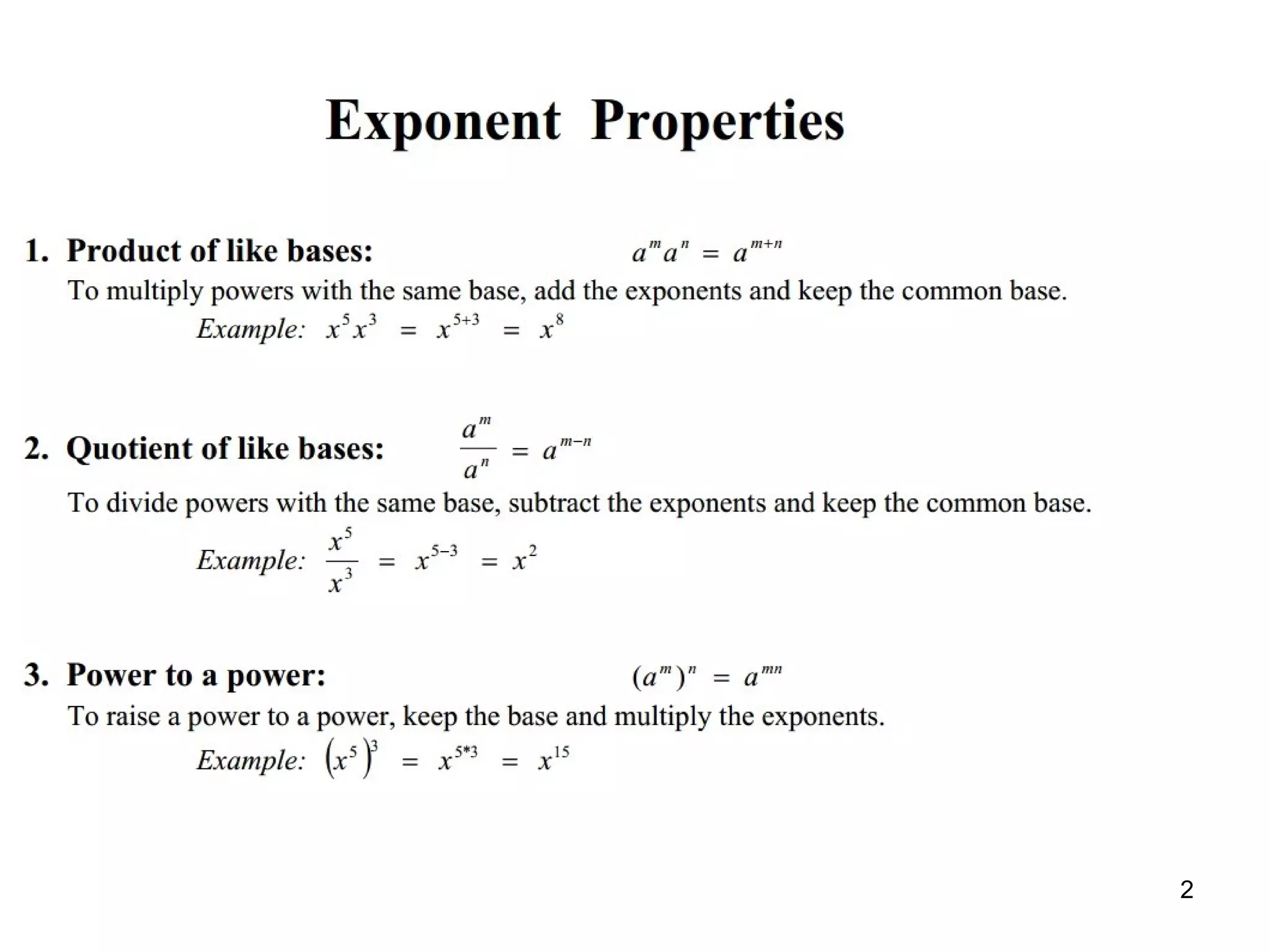 3) Important formulas for polynomial operations such as (a + b)(a - b) = a2 - b2 and (a + b)2 = a2 + 2ab + b2.