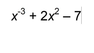 This document discusses the characteristics of polynomials and non-polynomials. It states that for an expression to be a polynomial, the variables cannot have negative or fractional exponents, and a variable cannot be in the denominator. It then provides examples of expressions and identifies whether they are polynomials or non-polynomials based on these criteria.