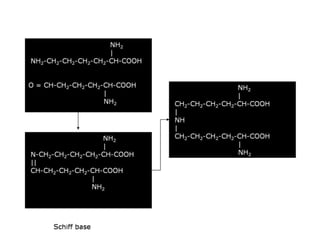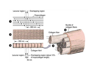 This document discusses different types of fibrous proteins. It begins by introducing proteins and describing their structure as polypeptide chains formed from amino acids linked by peptide bonds. It then focuses on three important fibrous proteins: collagen, elastin, and keratin. For each, it describes their structure, synthesis, properties, and applications. Collagen is the most abundant protein and forms connective tissues. Elastin provides elasticity. Keratin forms hair, nails, feathers and horns through intermolecular bonding. These proteins each have distinct structures and functions that make them vital components of living tissues.