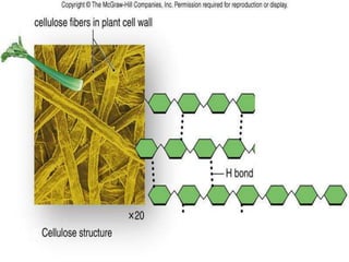 Polysaccharides are complex biomacromolecules made of monosaccharide units linked by glycosidic bonds, classified into structural and storage types. Key examples include cellulose, a structural polysaccharide in plant cell walls, and starch, a storage polysaccharide in plants. Their primary functions are to provide structural support, store energy, and facilitate cellular communication.