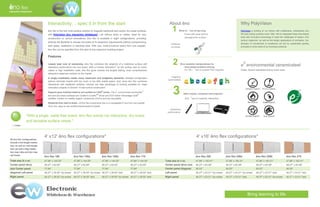 The document provides technical specifications for the ēno interactive whiteboard, highlighting its capabilities, environmental certifications, and system requirements. It emphasizes the ēno flex model as a versatile multi-surface solution for educators and architects that combines interactive and traditional surfaces, offering various configurations for different classroom needs. The board is designed to be easy to install, durable, and sustainable, qualifying for LEED points and featuring a comprehensive warranty.