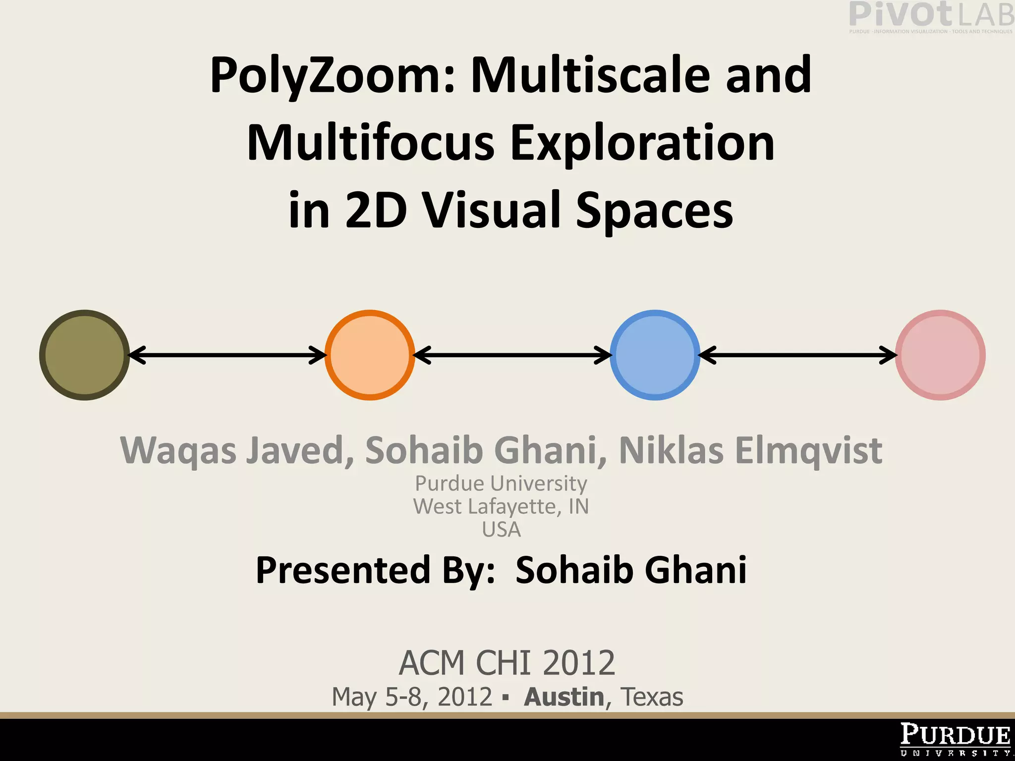 The document presents Polyzoom, a multiscale and multifocus navigation technique for 2D visual spaces, aimed to improve user interaction in large datasets like Google Maps. Two user studies demonstrate that Polyzoom significantly outperforms traditional pan and zoom techniques in terms of completion time for both multiscale visual searches and multifocus comparisons. The design goals of Polyzoom include maintaining multiscale and multifocus awareness without distortion or overlap.