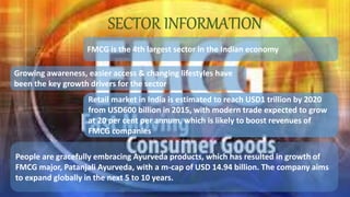 The document discusses the growth of the FMCG sector in India, highlighting its significant expansion, particularly within health and personal care products. Hindustan Unilever Limited (HUL) is identified as the largest player in this market, with notable financial performance and a rich history in India. It also details Ponds as a leading personal care brand under HUL, discussing its market strategies, product offerings, and competitive landscape.