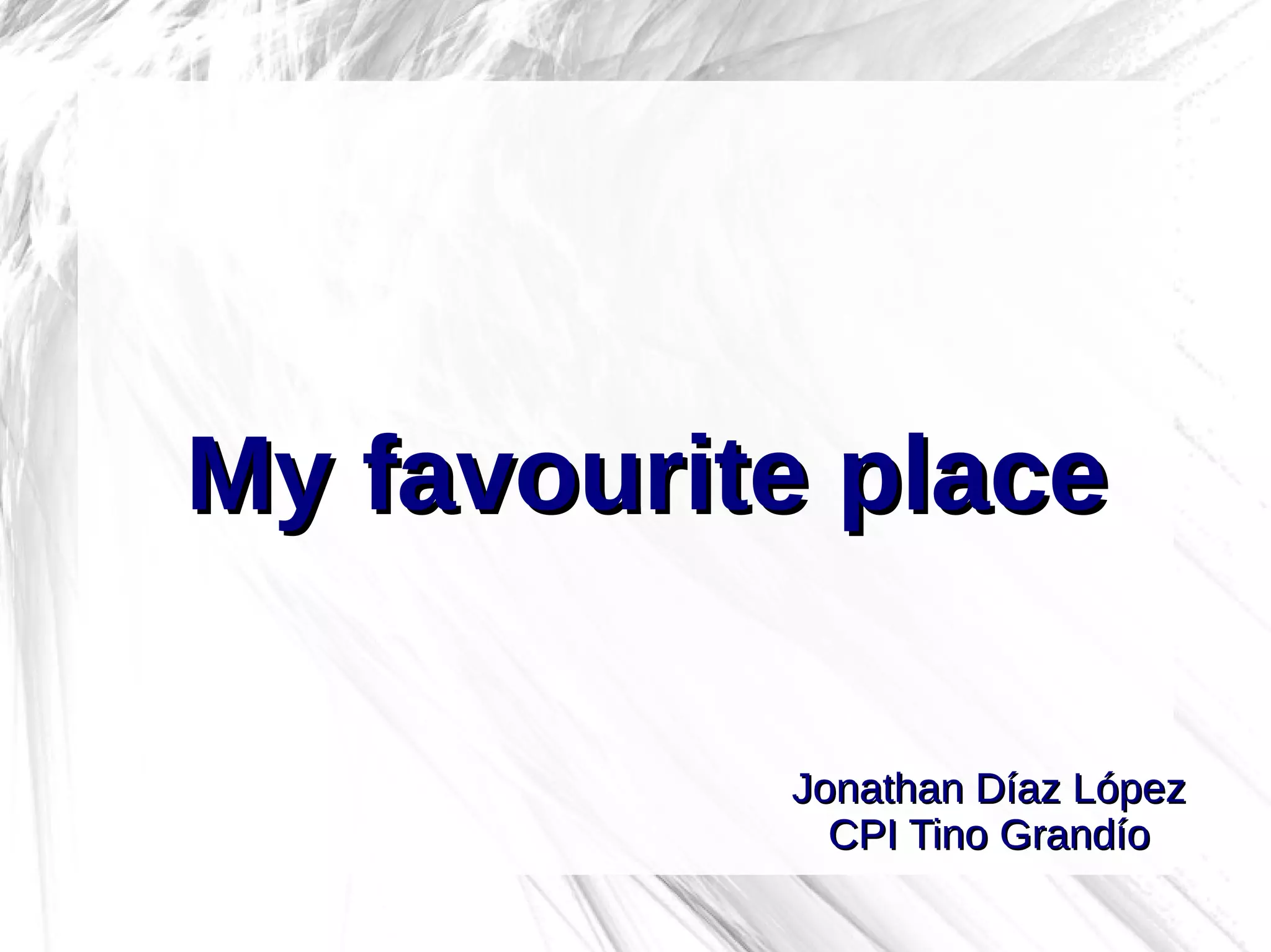 The document describes Jonathan's favorite place, the Cabalar Bridge, which passes over the Ferreira River in Guntín. Jonathan enjoys this place because it is beautiful, quiet, has lots of plantlife, and is home to animals like trout, birds and frogs. The bridge provides a scenic natural setting that Jonathan finds relaxing.