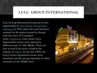 LuLu Group International is an Indian Emirati-based multinational conglomerate founded in 2000 by M. A. Yusuff Ali. It operates hypermarkets and retail stores across 23 countries in the Middle East, Asia, US, and Europe. LuLu Group has an annual turnover of USD 8 billion and over 57,000 employees. It is headquartered in Abu Dhabi, United Arab Emirates.