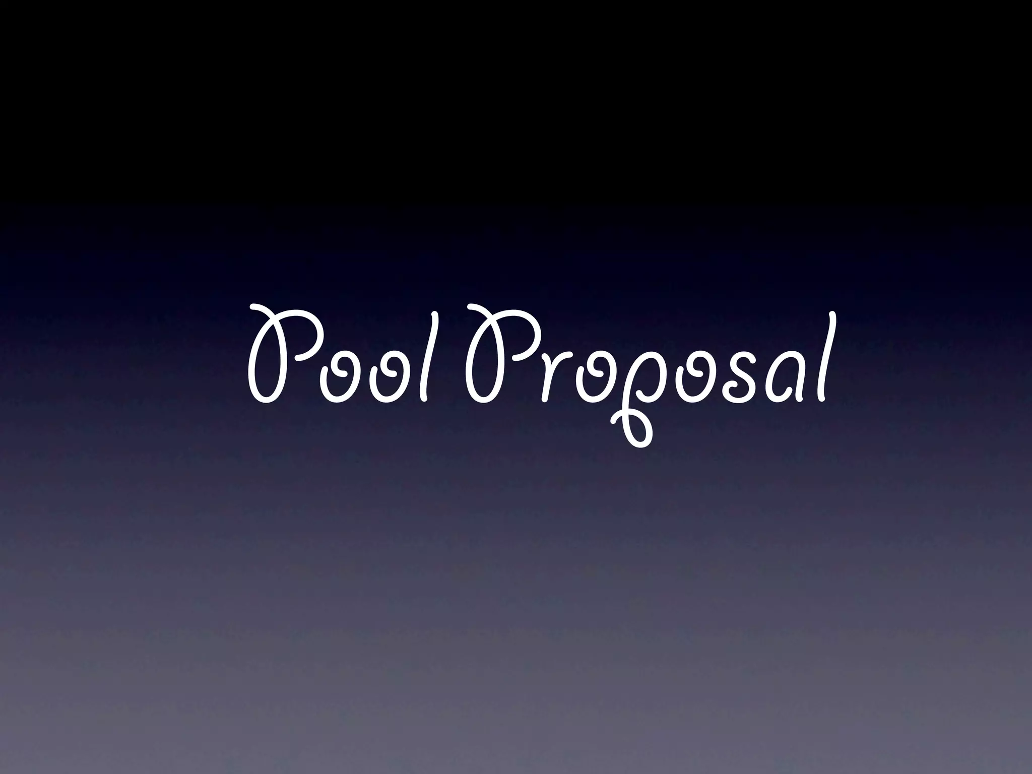 The pool proposal includes a sketchup model and cost details for a pool with a 60m perimeter and optional 11m jacuzzi. The base pool costs $895.8, the jacuzzi adds $41.6, and the total project cost is $937.4.
