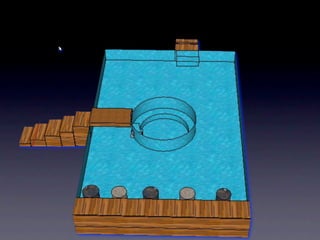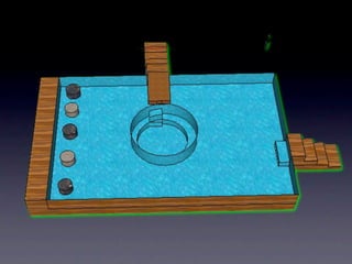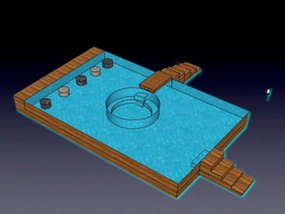 The document proposes a pool design that was modeled using Google SketchUp. The pool has a perimeter of 60 meters and includes a jacuzzi with an 11 meter circumference. The total estimated cost of the pool is $937.4, which includes $895.8 for the pool alone and an additional $41.6 for the jacuzzi.
