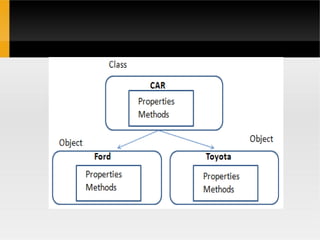 This document compares procedure-oriented programming and object-oriented programming. Procedure-oriented programming divides programs into smaller subprograms called functions that can access shared global data, while object-oriented programming divides programs into objects that encapsulate both data and functions together and protect data from access by external functions. The document also discusses key object-oriented programming concepts like classes, encapsulation, inheritance, polymorphism, and messaging that provide benefits like code reuse and easier management of complex software projects.