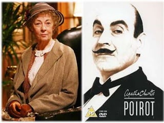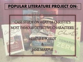 This document provides an overview of Agatha Christie's famous detective characters Hercule Poirot and Jane Marple. It describes their origins, physical appearances, methods of detection, and popularity as depicted in Christie's novels. Hercule Poirot was a Belgian detective introduced in 1920 who used his "little gray cells" to solve cases through logical reasoning. Jane Marple, based on Christie's grandmother, was an elderly resident of the village St. Mary Mead who drew on observations of village life to solve crimes. Both characters became internationally renowned for their problem-solving skills through multiple novels and other media.