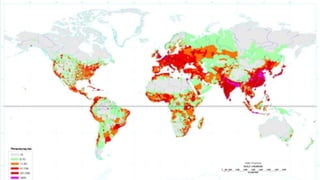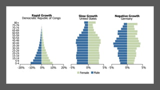 The document discusses population distribution and demography. It defines key population terms like population density, birth rate, death rate, and population pyramids. It notes that population distribution is uneven worldwide, with more people living near coastal regions and cities. Europe's population is currently falling due to low birth rates, though migration can help offset this decline. The global population is growing, with China and India having the largest populations currently.