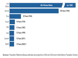 3. Issues discussed around overpopulation include increased stress on resources and the environment, as well as challenges meeting needs like education, health, and eradicating poverty in fast-growing regions.