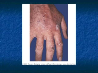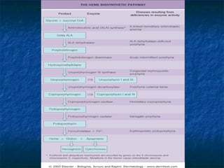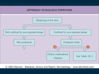 - Symptoms include blistering or burning of the skin when exposed to light due to accumulation of water-soluble or lipophilic porphyrins.