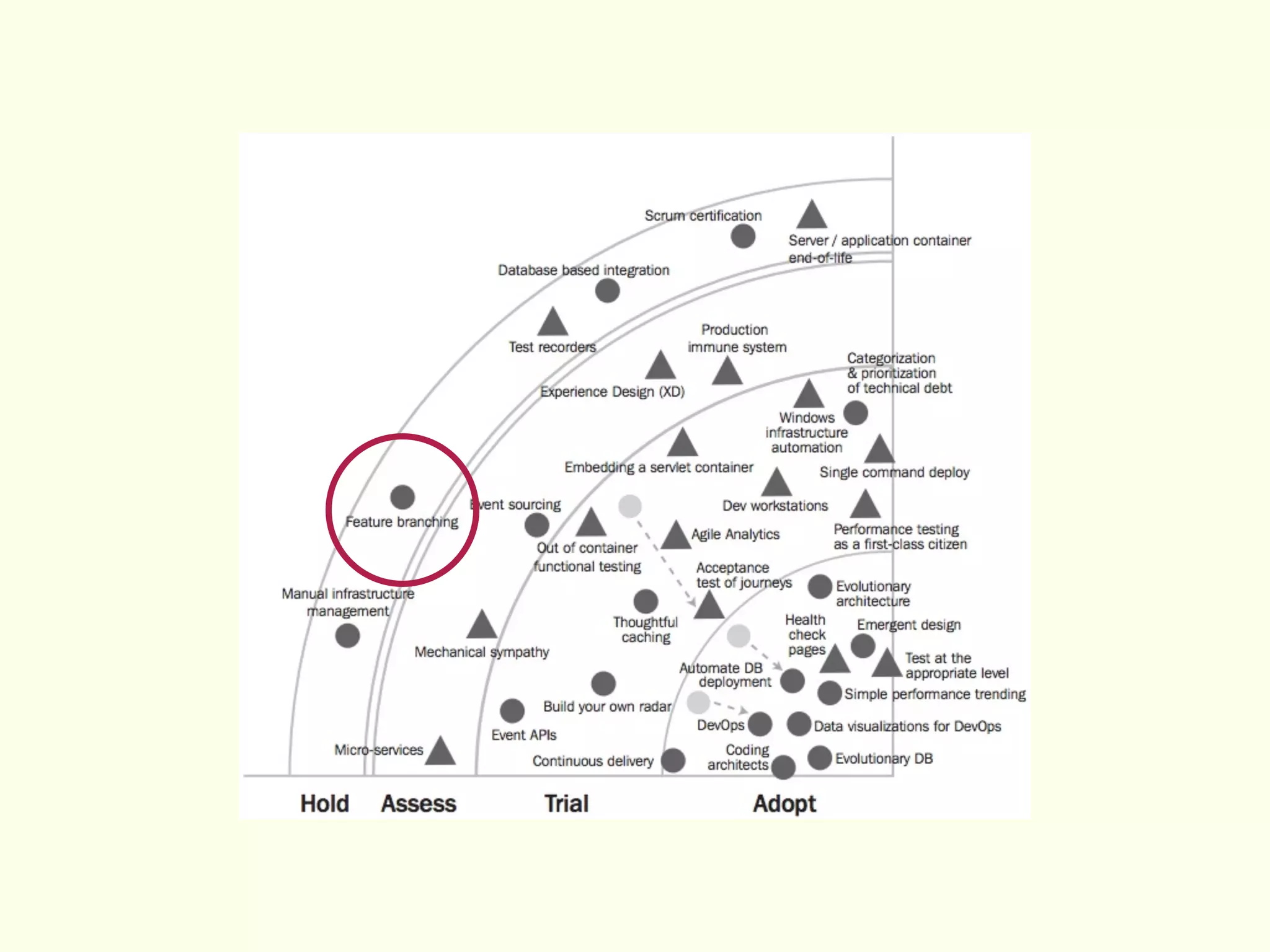 The document discusses trunk-based development and critiques feature branching in software development. It emphasizes continuous integration as a practice to reduce integration problems and facilitate rapid development. Additionally, it suggests feature toggles and highlights the notion that excessive branching complicates development rather than simplifying it.