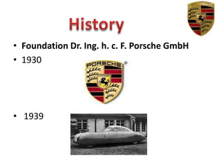 The document details the history and evolution of Porsche vehicles, highlighting key specifications and developments from 1930 to 2011. It explains the significance of the Porsche logo, which represents the city of Stuttgart and has remained largely unchanged for 50 years. Additionally, it discusses upcoming launches, including various versions of the new 911 model and a new car based on the classic 959 sports model.