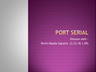 Dokumen ini menjelaskan tentang port serial yang digunakan untuk mentransmisikan satu bit informasi dalam satu waktu, dengan kelebihan seperti kabel yang dibutuhkan sedikit dan tahan terhadap cable loss. Namun, port serial lebih lambat dan lebih rumit dibandingkan port parallel, serta mengikuti standar sinyal komunikasi RS232 yang mengatur level tegangan untuk logika '1' dan '0'.