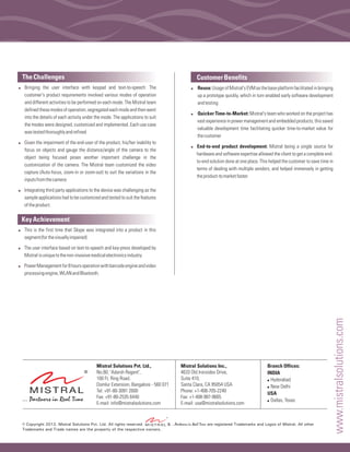 This case study details Mistral's development of a portable talking barcode scanner designed for visually impaired users, which functions as an 'eye' to identify objects through barcode scanning and includes additional features like video streaming and music playback. Mistral provided comprehensive services from design to production, integrating third-party applications and customizing user interfaces for improved accessibility. Key achievements include the integration of Skype for live streaming, making this device a unique offering in the non-invasive medical electronics sector.