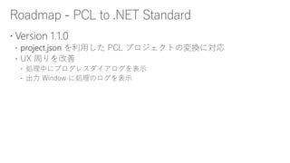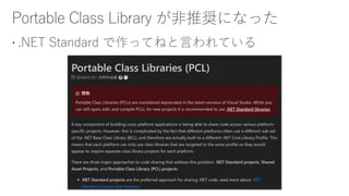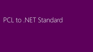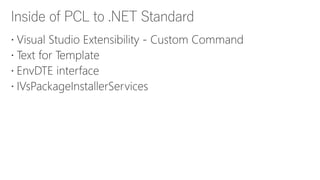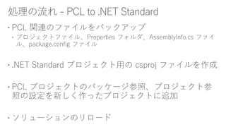 This document contains links to resources about converting class libraries from Portable Class Libraries (PCL) to .NET Standard. It includes links to a GitHub repository containing a tool called Mutatio that can automatically upgrade PCL projects, an article explaining how to manually upgrade a PCL project, and links to a Visual Studio extension and its GitHub repository that helps convert PCL to .NET Standard projects. It also mentions that other settings may need to be changed during the conversion process.