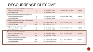 2) The PORTEC-3 trial randomized 686 patients with high risk endometrial cancer to chemoradiotherapy or radiotherapy alone. It found chemoradiotherapy improved failure-free survival compared to radiotherapy alone, especially for stage III patients, but with increased toxicity.