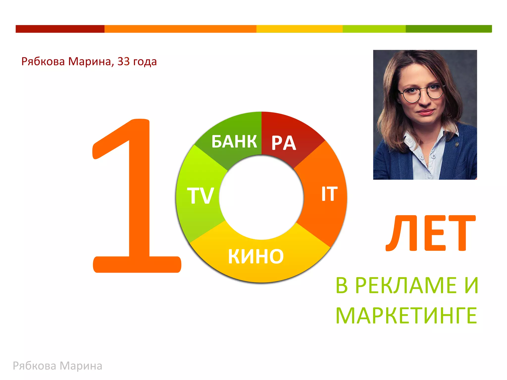 Марина Рябкова имеет более 10 лет опыта в рекламе и маркетинге, работала в различных ролях от менеджера по работе с клиентами до арт-менеджера. Она реализовала множество успешных проектов, включая рекламные кампании для Braun и ZEE TV, и проводила международные конференции для IT-компаний. В последнее время занималась развитием внутренних процессов и обучением сотрудников в Сбербанке, а также запуском краудсорсинговых проектов.