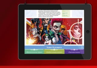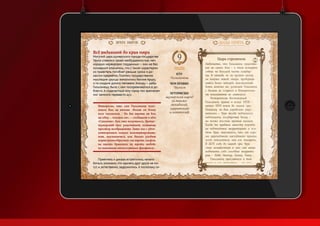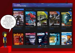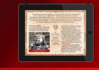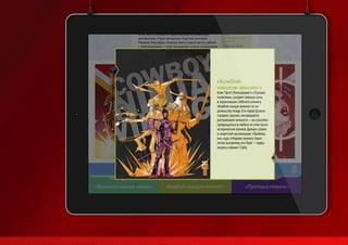 Презентация Юрия Ионкина демонстрирует его творческие работы, включая дизайн и иконки для приложения журнала «мир фантастики» в App Store. Он также представил проекты, такие как логотип для группы «Rhapsody» и меню для кафе, подчеркивая использование хорошей типографии. В конце упоминаются его контактные данные и рекомендации.