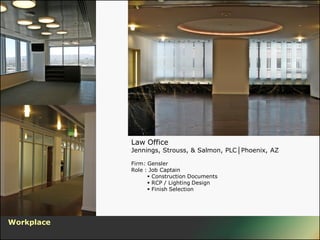 Dean Russell has experience in interior design, lighting design, and architecture for various project types including workplaces, medical offices, hospitality, retail, and civic/museum projects. He has worked with firms such as Gensler, Aref & Associates, Gould Evans, Light Group Industries, and TRK Architecture in roles including interior designer, lighting designer, job captain, and millwork designer. His areas of focus include space planning, concept development, construction documents, lighting design, finish selection, and LEED certification requirements.