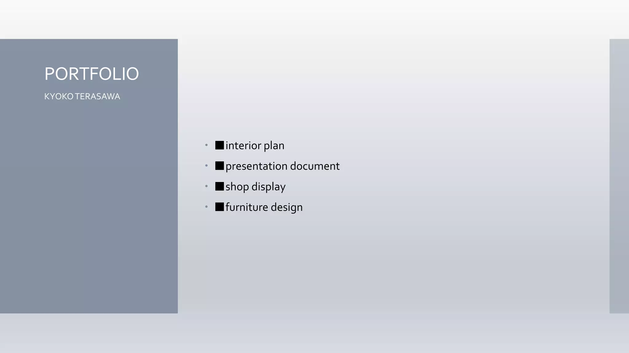 Port folio of Kyoko Terasawa Interior Plannning, Interior Design, Display, Proposition, Presentation, Lifestyle Planning