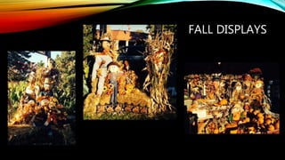 The portfolio document lists various display and design projects including fall displays, a Christmas village, Christmas displays, and other projects with repetitions of fall and Christmas displays listed.