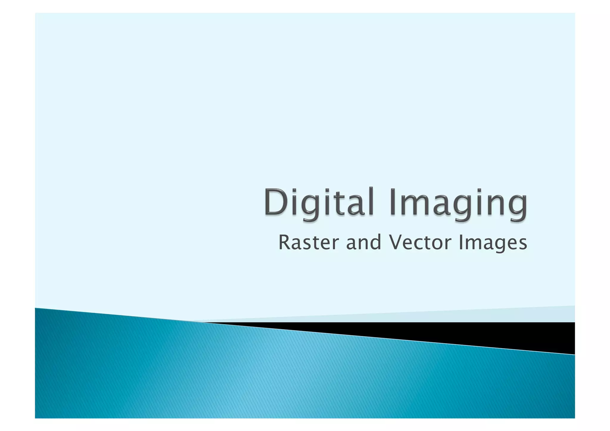 This document discusses different types of digital images. Raster images are made up of pixels and lose quality when resized, while vector images use paths and shapes so maintain quality when resized. It provides details on raster and vector images, comparing their advantages and disadvantages. Common file formats like JPEG, GIF and TIFF are also explained, including when each format is best used.