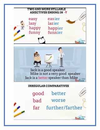 This document contains grammar lessons on various topics: