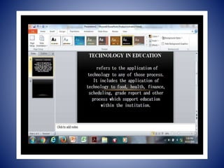 Educational technology is the use of technology to support and enhance learning. It involves using technology tools and resources to help teach students and solve educational problems. The document discusses educational technology from several perspectives: it can be both a boon and bane; it requires a systematic approach to teaching; and it plays various roles in supporting learning through representation, information, context, social interaction, and reflection. Learning through educational technology exposes students to new skills needed in the digital age and helps prepare them for the future.