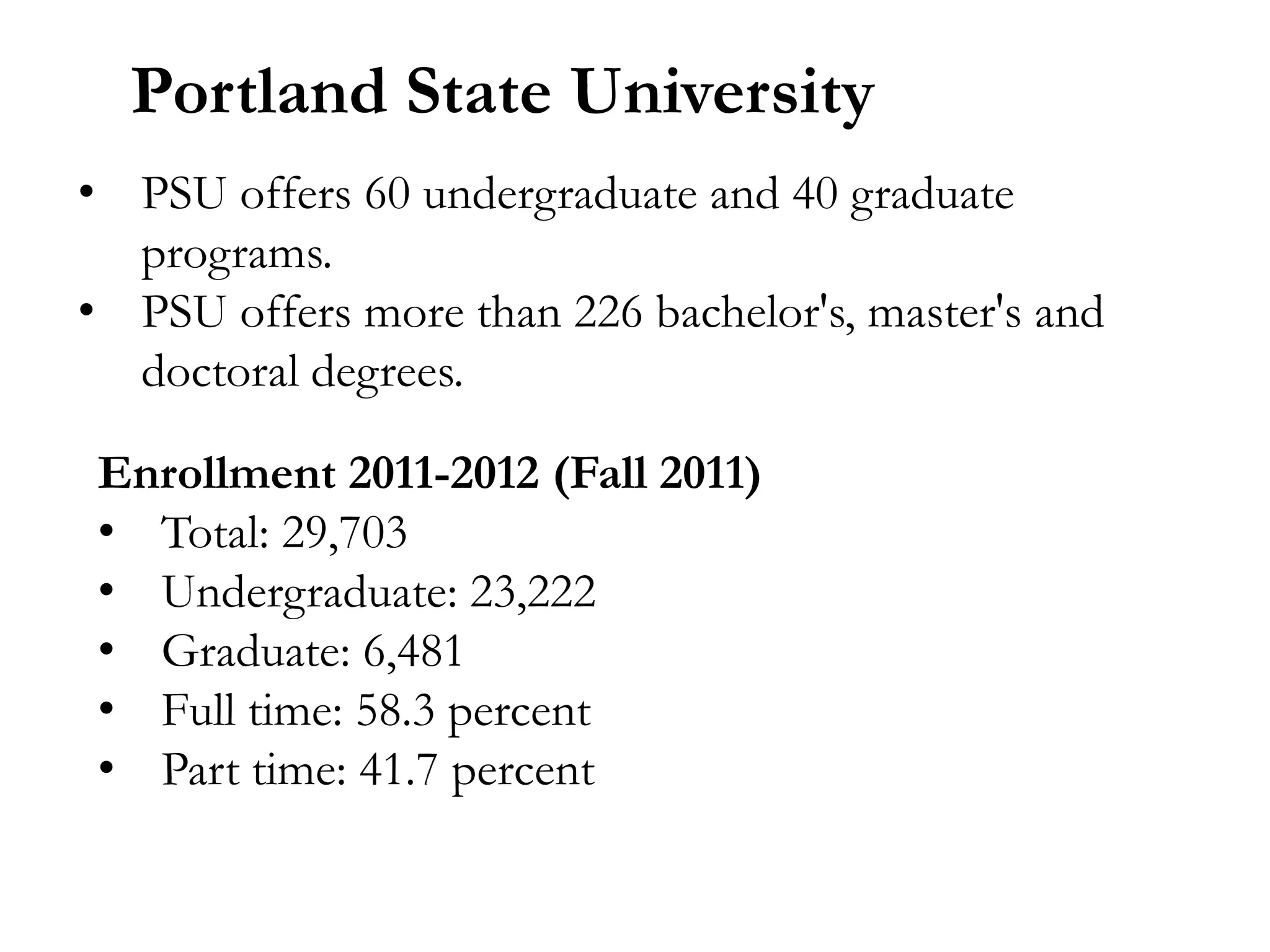 Portland State University (PSU) is implementing a portfolio of initiatives aimed at improving student success and retention in the context of a dynamic environment. Key strategies include intentional advising, prescriptive degree maps, and early identification of at-risk students, supported by data assessment and a culture of measurement. The goal is to enhance educational opportunities while adapting to challenges such as declining resources and evolving student needs.