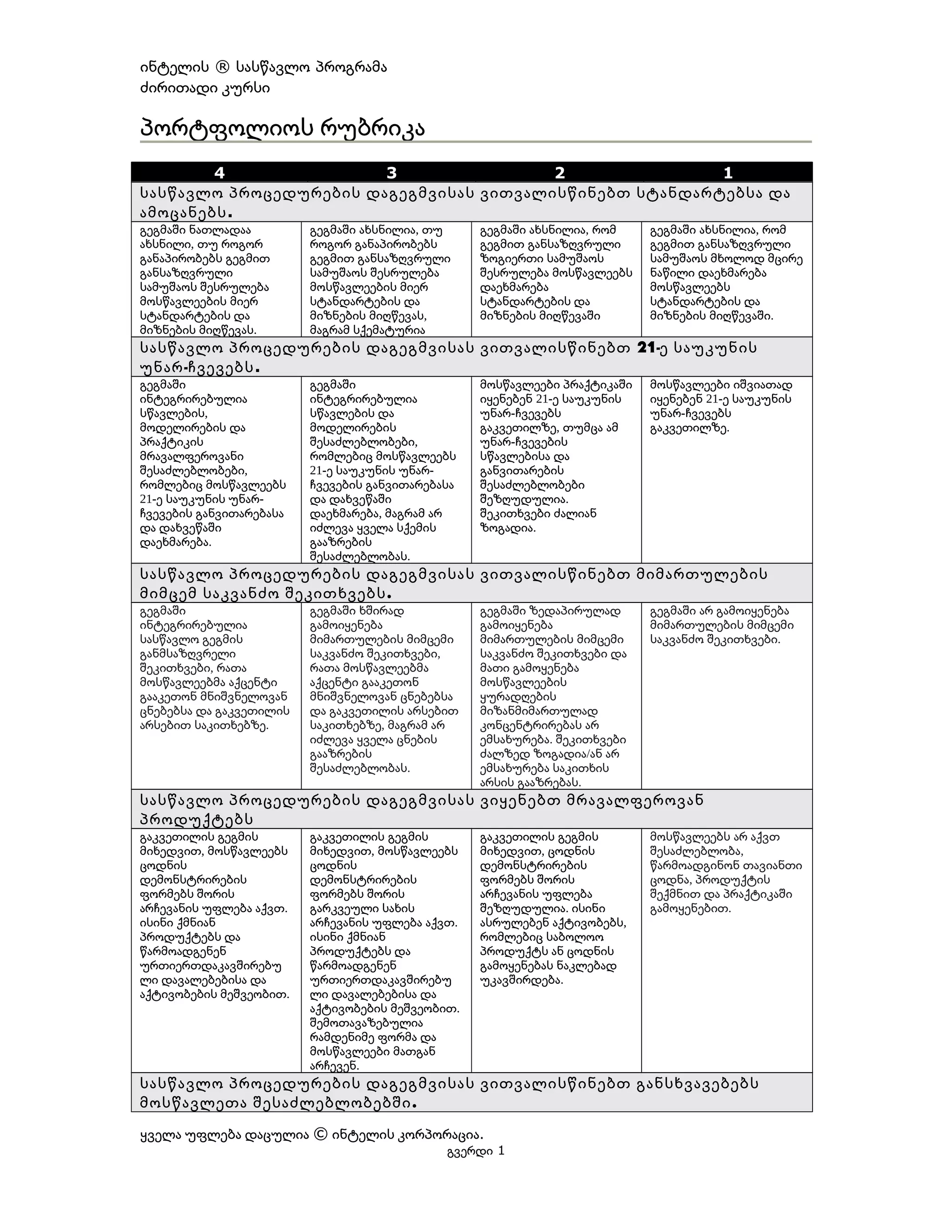 ინტელის ® სასწავლოპროგრამა