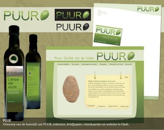 Ontwerp van dehuisstijl van PUUR, etiketten, briefpapier, visitekaartjes en website in Flash.