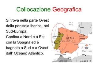 Il Portogallo, situato nella parte occidentale della penisola iberica, è confinante con la Spagna e bagnato dall'Oceano Atlantico. La sua economia è principalmente agricola, ma il turismo ha visto una crescita significativa dagli anni '80 e il paese è una repubblica semi-presidenziale con circa 10 milioni di abitanti. Il portoghese è la lingua ufficiale, e il Portogallo è noto per la sua ricca storia, cultura e curiosità, tra cui l'abolizione della schiavitù e l'importante patrimonio del fado.