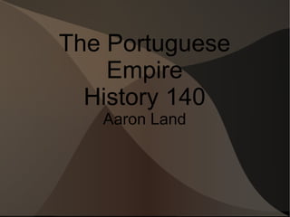 The document summarizes the history of the Portuguese Empire from its origins to the establishment of Brazil as a sugar colony. It details how Portugal gained independence in 1128 and officially became a recognized state in 1143. It then recounts Portugal's reconquest of territory from the Moors and its expansion across Africa and Asia under explorers like Henry the Navigator and Vasco da Gama. This led Portugal to establish trading posts and claim new lands, including signing the Treaty of Tordesillas in 1494 to divide colonial territories with Spain. Brazil was then established as a sugar colony after its discovery in 1500, with the importation of African slaves becoming integral to its economy.