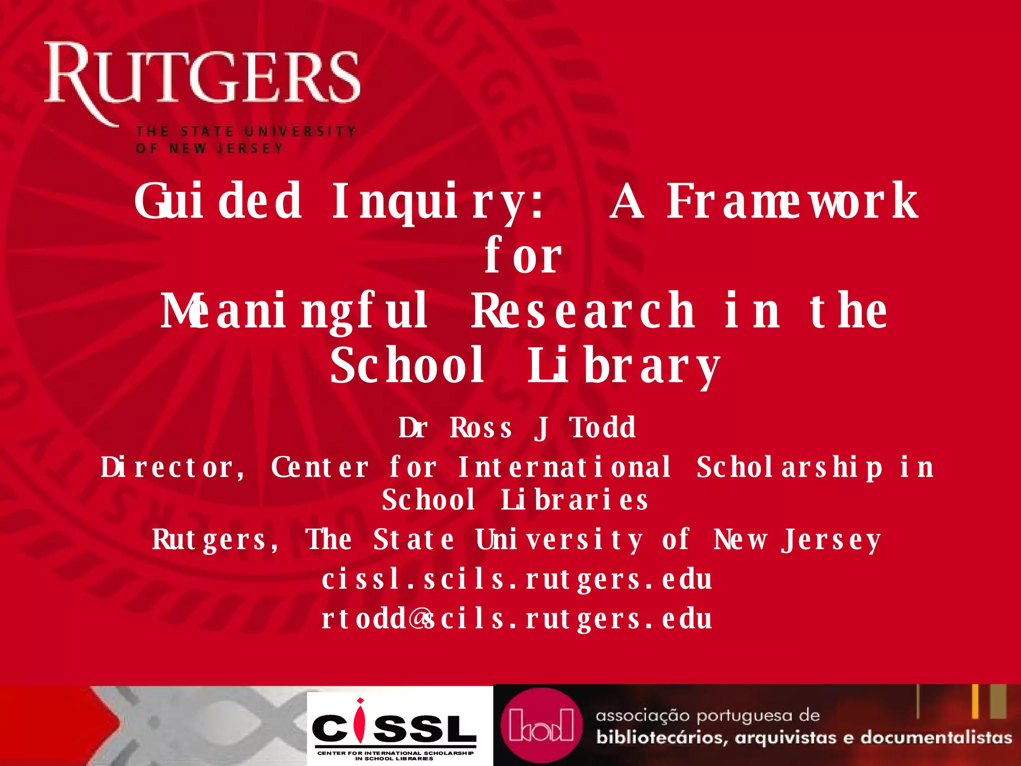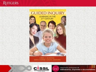 The document discusses guided inquiry as a framework for meaningful research in school libraries. It outlines the constructivist foundations of inquiry learning and describes typical "bird unit" research assignments that students often complete with little transformation of knowledge. Guided inquiry is presented as an alternative approach that involves carefully planned intervention by teachers and librarians to guide students through curriculum-based inquiry units leading to deep knowledge and understanding. Key aspects of Carol Kuhlthau's Information Search Process model are also summarized as they relate to implementing guided inquiry.