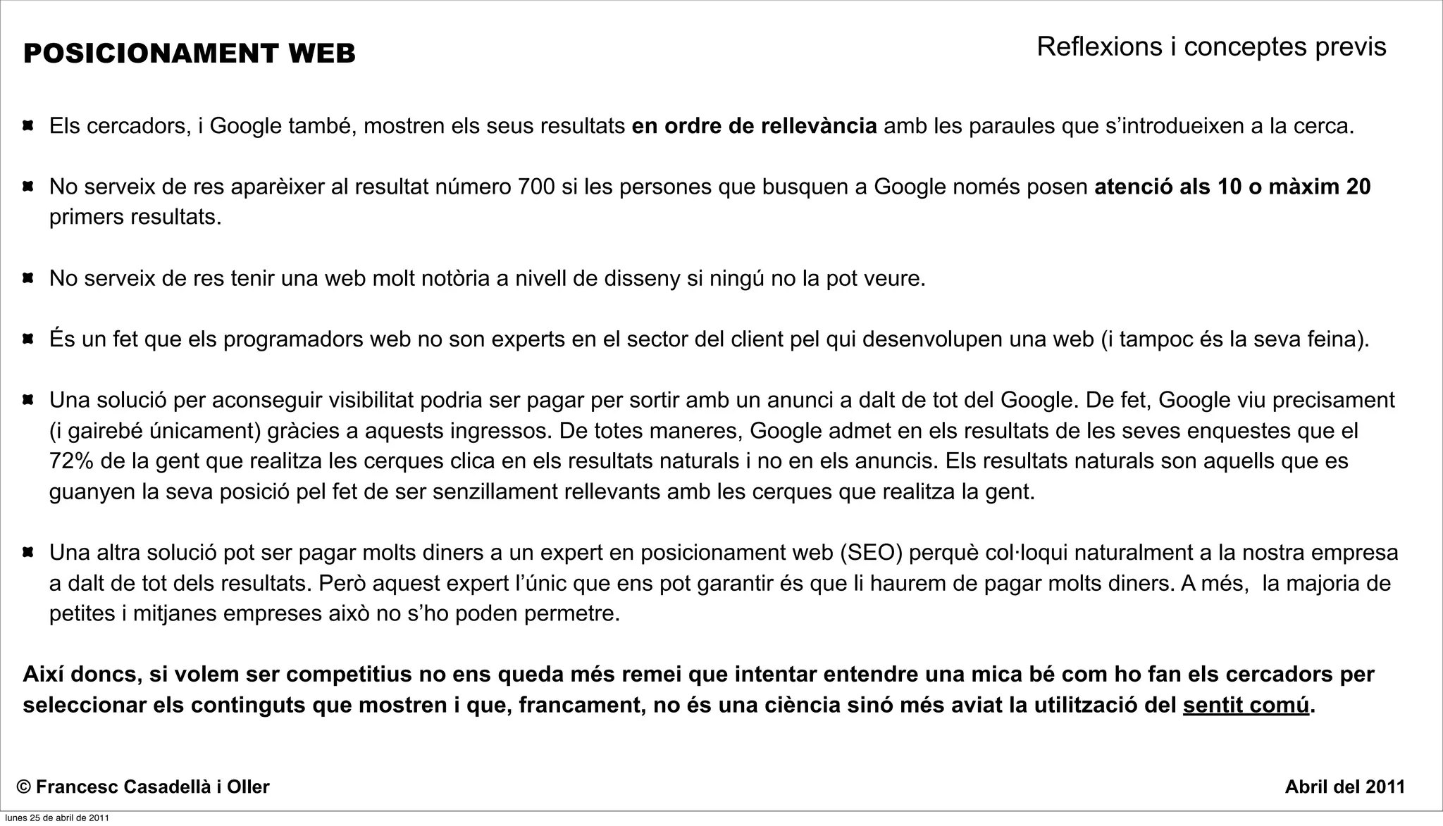 1ª. Quines son les 15 o 20 paraules clau per les que volem posicionar-nos? Una suma dels productes i serveis