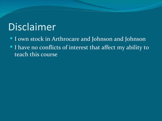 Christopher M. Aland MD discusses shoulder arthroscopy procedures and positions. Shoulder arthroscopy can be performed in either the beach chair or lateral decubitus position, with recent modifications to both. The lateral decubitus position involves using a standard table with supports for the axilla, head, and sides. The beach chair position uses a standard table with back support and mechanical or manual leg support and head positioning, allowing for conversion to an open procedure or posterior inferior access if needed.