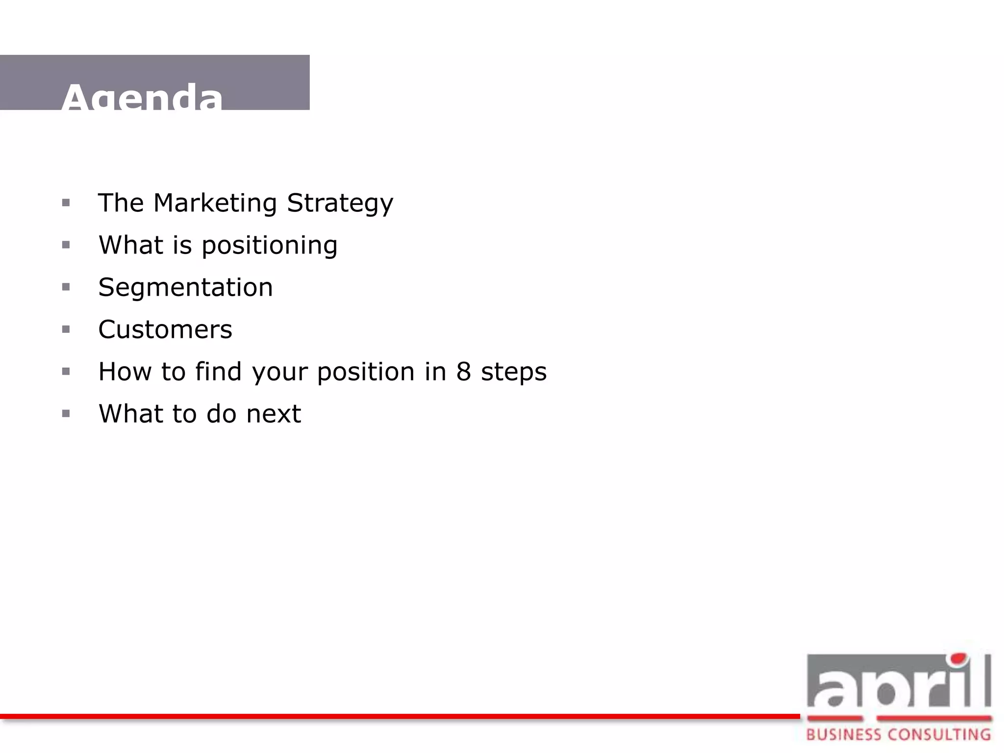 This document discusses positioning and marketing strategy. It defines positioning as the perceptual location of a product or service in the marketplace. Effective positioning puts a product first in the minds of customers within a targeted market segment. The document outlines an 8-step process for determining a company's position, which includes defining the target customer, their requirements, how the company measures up to competitors, and drafting a positioning statement. It stresses that positioning is about how a product or service is perceived by potential customers and should be based on providing the benefits most important to the target segment.