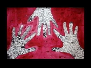 Positive space refers to the area occupied by an object, while negative space is the space around the object. The document discusses how artists use positive and negative space, giving examples of bottles where the positive space is what the bottles occupy and the negative space is the area around them. Artists can manipulate objects by deliberately leaving certain spaces white or adding patterns to trick the viewer's eyes.