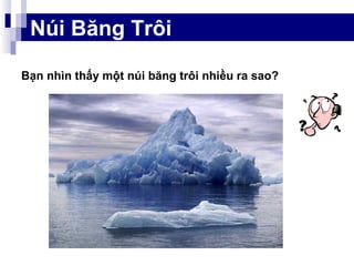 Bài viết sử dụng hình ảnh núi băng để minh họa sự khác biệt giữa những gì con người thể hiện và những gì thật sự ẩn chứa bên trong, nhấn mạnh tầm quan trọng của thái độ tích cực trong cuộc sống. Nó cũng đưa ra nhiều câu trích dẫn nổi tiếng về thái độ, cho thấy rằng thái độ tích cực có ảnh hưởng lớn đến hành động và kết quả trong cuộc sống. Cuối cùng, nó khuyến khích mọi người thay đổi thái độ để đạt được sự phát triển và thành công.