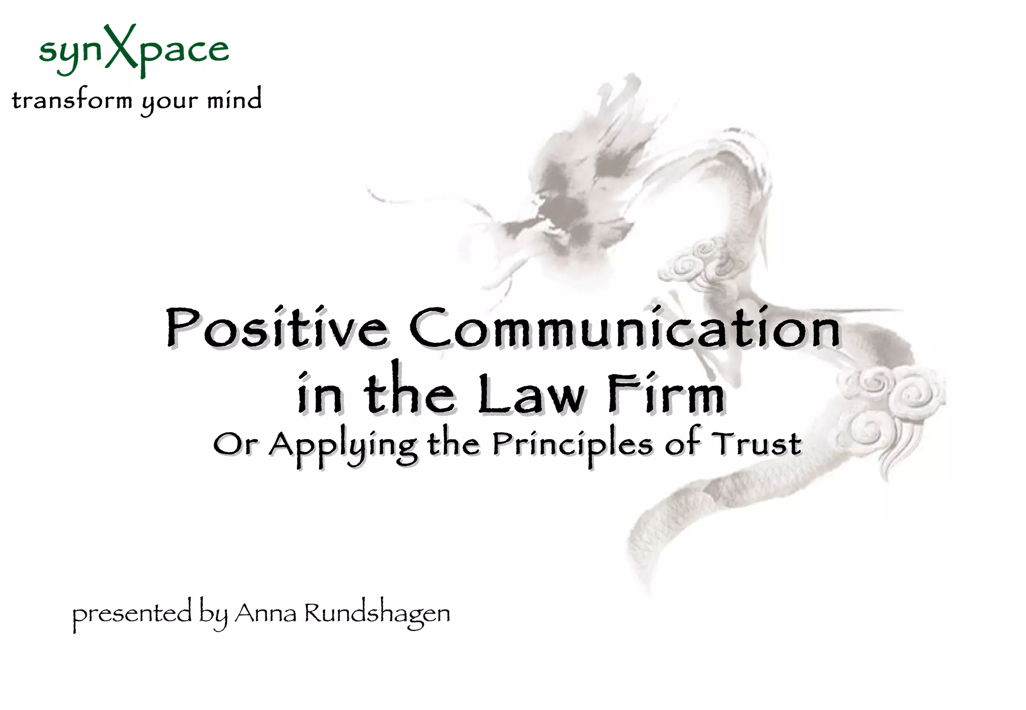 The document discusses the importance of positive communication and trust in the workplace. It describes a conversation between Mindy and Tina where Tina speaks to Mindy in a disrespectful and dismissive manner. Neither Tina nor Mindy attempt to improve their communication or relationship. The document advocates developing procedures to promote positive communication, trust, and respect between colleagues through practices like listening, keeping commitments, and giving honest feedback.