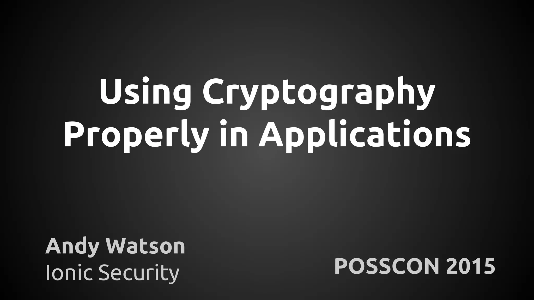 The document discusses the proper use of cryptography in applications, focusing on key concepts such as random number generation, salting, hashing, key derivation, and symmetric encryption. It highlights common mistakes made in the implementation of cryptographic techniques, emphasizing the importance of securing passwords and the dangers of weak configurations. The speaker, Andy Watson from Ionic Security, aims to educate developers to avoid these pitfalls and use established methodologies to protect sensitive data.