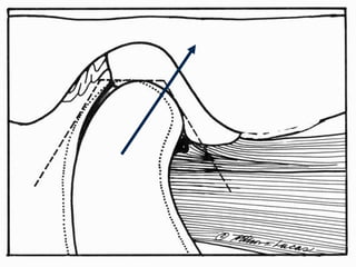 Dr. Ulf Posselt first described the envelope of motion in 1952 as a 3D concept to illustrate the possible movements of the mandible in all three planes of movement - sagittal, horizontal, and frontal. The envelope differs between individuals but maintains the same characteristic shape, with the superior surface determined by tooth contacts and the borders primarily determined by the TMJ anatomy and ligaments. The document then discusses reference positions like centric relation and maximum intercuspation, as well as types of mandibular movement including hinge, translational, and rotational. Border movements in the sagittal and horizontal planes are mapped out, illustrating positions like centric relation, maximum opening, and lateral excursions.