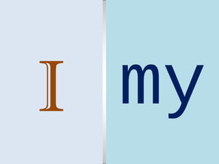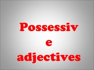 The document discusses the possessive adjectives in Spanish and provides examples of how each possessive adjective is used with different subjects. It covers the possessive adjectives "my, your, his, her, our, your, their, its" and provides examples of each with people, pets, objects, countries, and languages to demonstrate their usage.