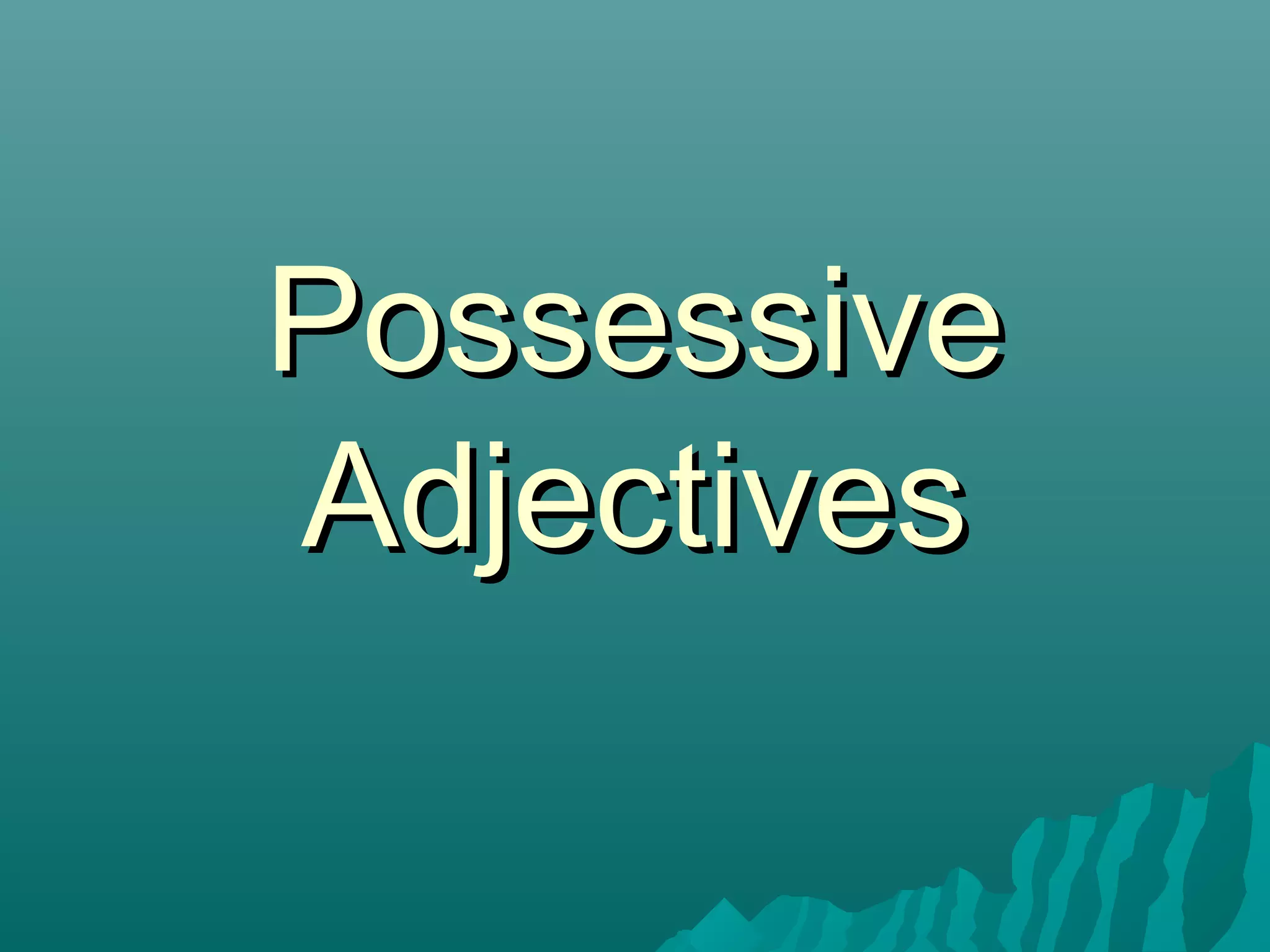 This document discusses Spanish possessive adjectives. It explains that possessive adjectives indicate who owns something or the relationship between people or things. The possessive adjective must agree in number and gender with the noun it modifies. It provides the Spanish possessive adjectives for singular and plural forms of "my," "your," "his/her/its," "our," "your," and "their." Examples are given to demonstrate how to use the possessive adjectives correctly with different nouns. A practice section allows the reader to select the correct possessive adjective for given nouns.